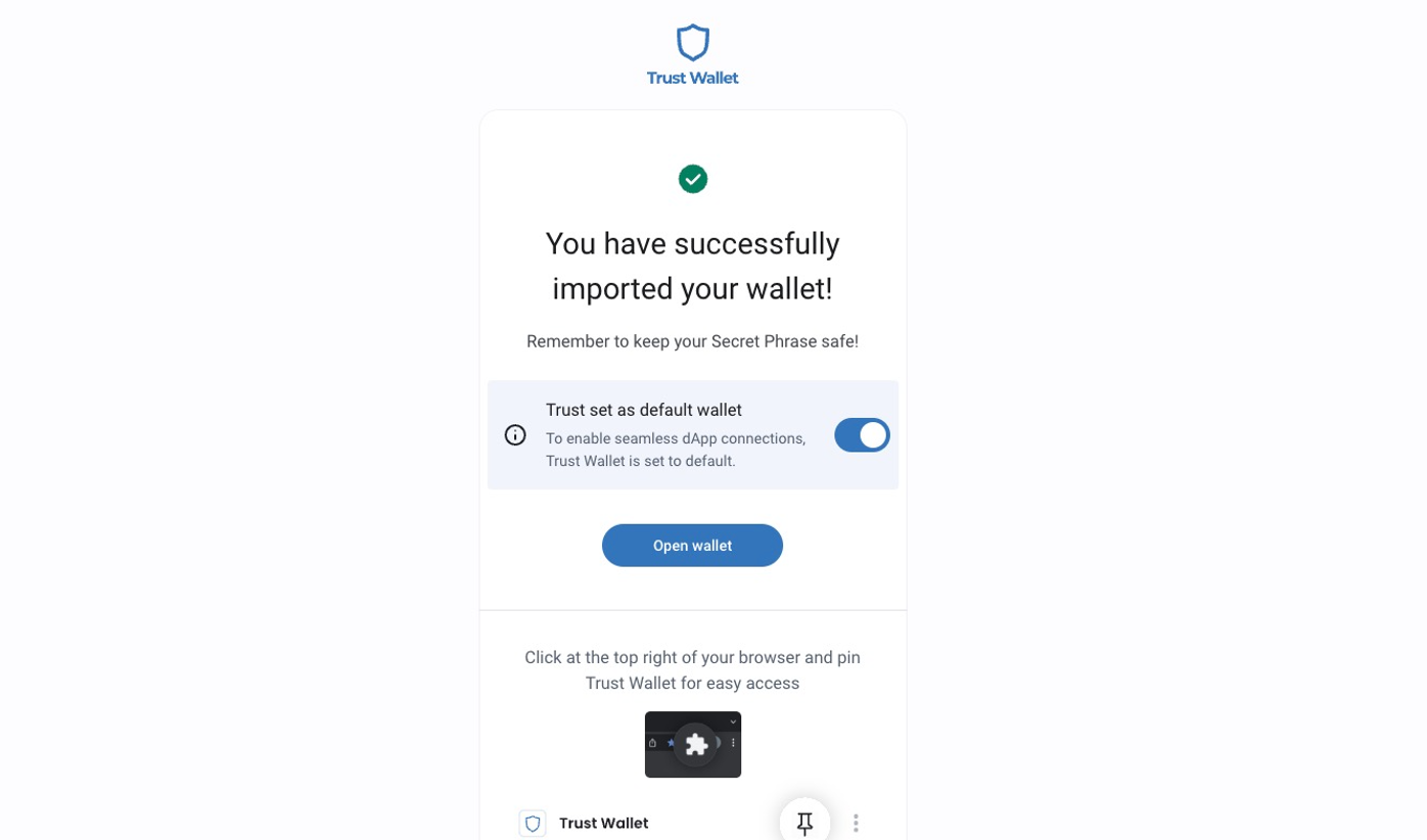 Click **"Open wallet"** to continue using the wallet.